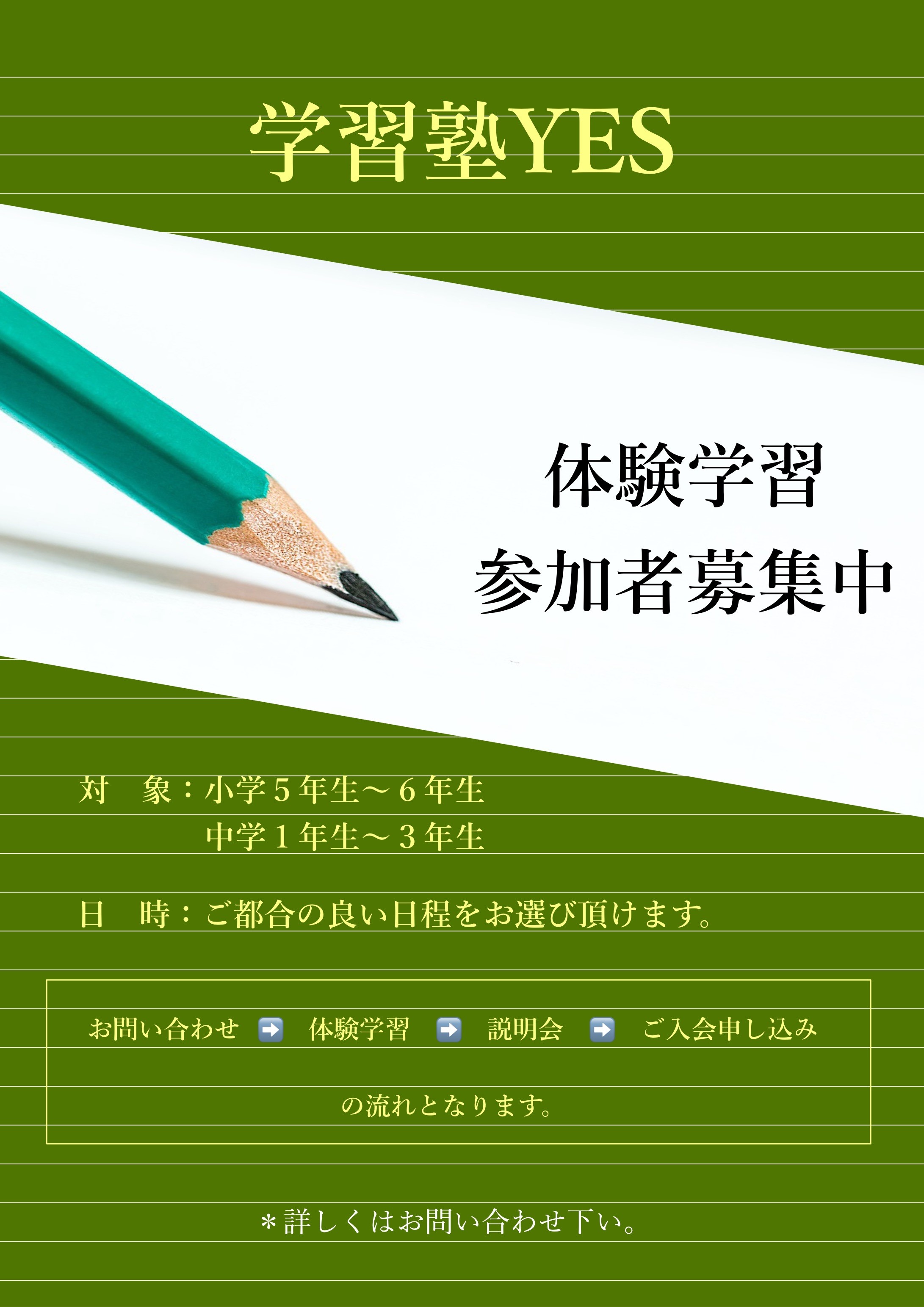 体 験 学 習 会 → 説 明 会 → ご 入 会 手 続 き |